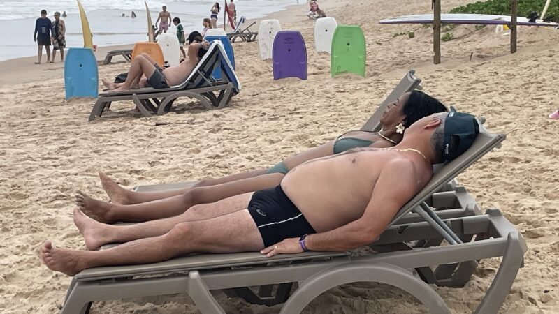 Als Europäerin bin ich fasziniert, wie viel Haut am Strand und selbst im Alltag gezeigt wird. Von Frauen, aber auch Männer gehen mit nacktem Oberkörper durch die Straßen. Bei unserer Shopping Tour neulich erklärte mir Pola, die String-Bikinihosen werden so designt, dass die kompletten Pohälften frei zu sehen sind. Der Stoff muss oben sitzen, der Rest sollte nackt sein. Biete eine Firma ihr Produkt in Europa an, wird zusätzlich eine andere Variante des Bikinihöschen hergestellt. Dann kann frau beim Einkaufen entscheiden Brazil Style or European Style?