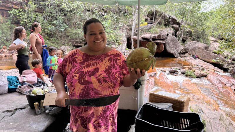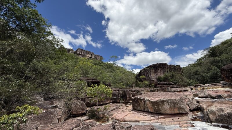 Endlich! Die Chapada Diamantina ist eine grüne Hochebene, die aus drei parallelen Gebirgszügen besteht. Deren östliche Kette Serra do Sincorá gehört seit 1985 mit 152.000 Hektar zu den 30 größten Nationalparks Brasiliens. Die vielen Wasserfällen, Flüssen mit Naturschwimmbecken, Höhlen und Sumpflandschaften kennzeichnen die Chapada Diamantina, deren Geschichte eng mit Diamantenfunden Mitte des 19. Jahrhunderts verbunden. Viele Glücksritter kamen während des Diamantenbooms nach Lençóis (zu deutsch Bettwäsche) und hausten in improvisierten Zeltunterkünften, die aus der Ferne wie weiße Tücher in der Landschaft aussahen. Mit all diesen Informationen wird mein Wissensschatz heute erweitert.