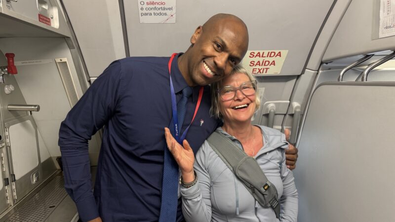 Inzwischen fühle ich mich wie George Clooney in dem Film „Up in the Air“. Ich gleite durch die Menschen eines Flughafens wie ein Fisch im Wasser. Und hatte ich nicht Flugangst? Nicht mehr da, das nennt man Exposition. Jetzt sitze ich völlig relaxt am Fenster, betrachte Brasilien von oben und flirte mit dem gut aussehenden Stewart.
